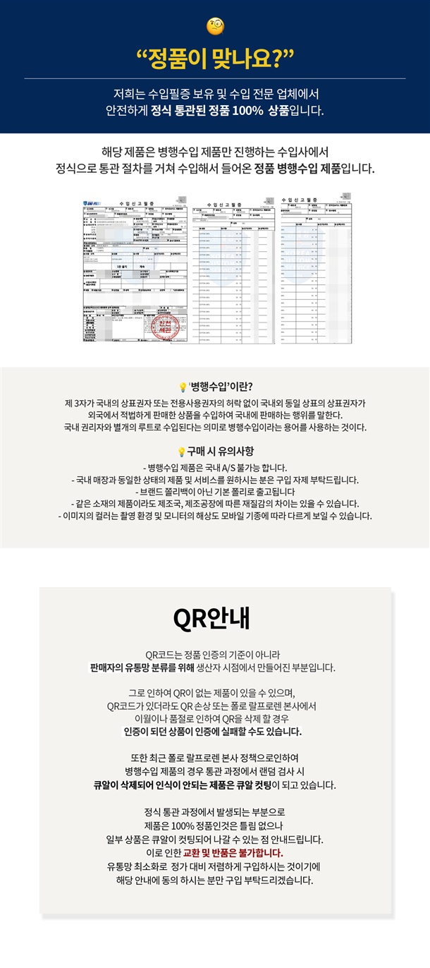 · 교환 시 수령한 상품 그대로 포장하셔야 하며 포장지 및 택이 손상된 경우 불가능합니다.